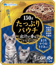 | 商品名 | CATJOYたっぷりパウチまぐろかつお 150g | CATJOYたっぷりパウチ鮪・鰹・ささみ 150g |